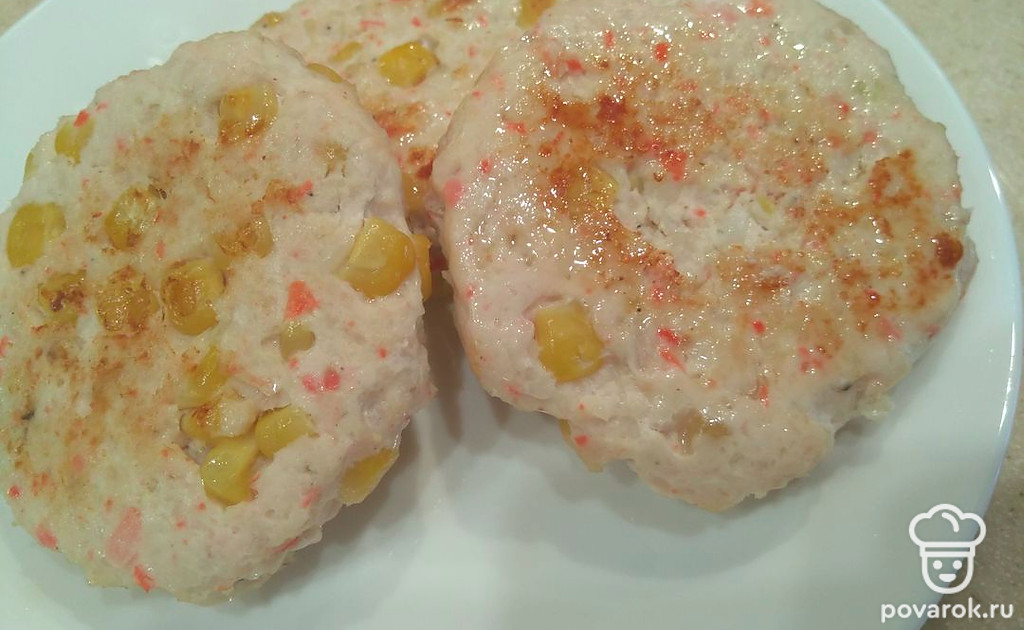 Котлеты получаются очень сочными и нежными, с приятным вкусом крабового мяса. Подойдут для праздничного стола.
