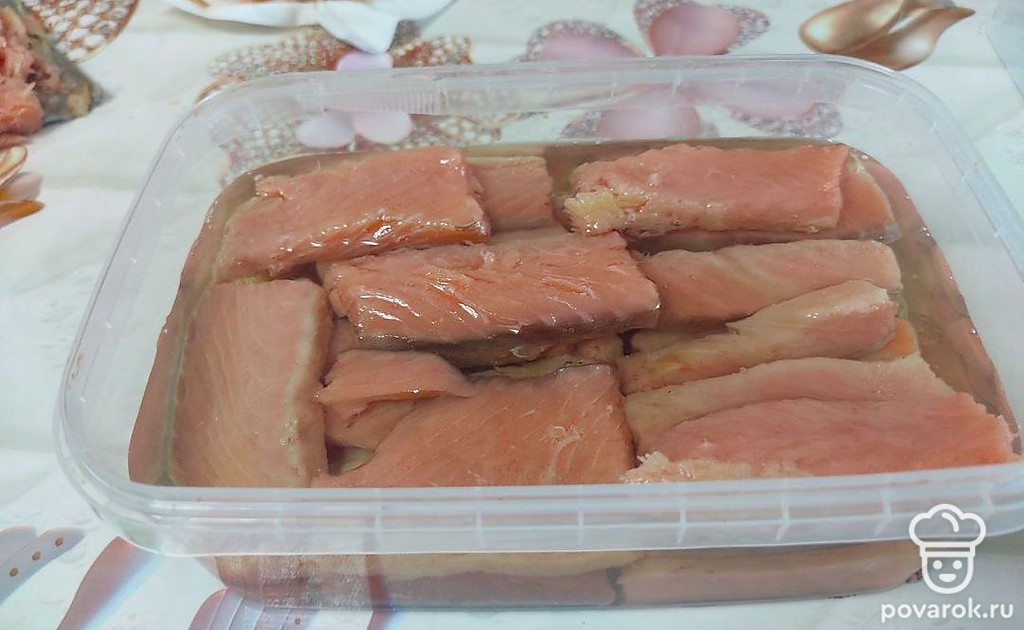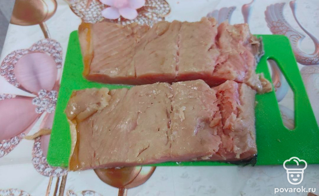 Для приготовления можно использовать семгу или форель. Отлично подходит для завтрака и бутербродов.