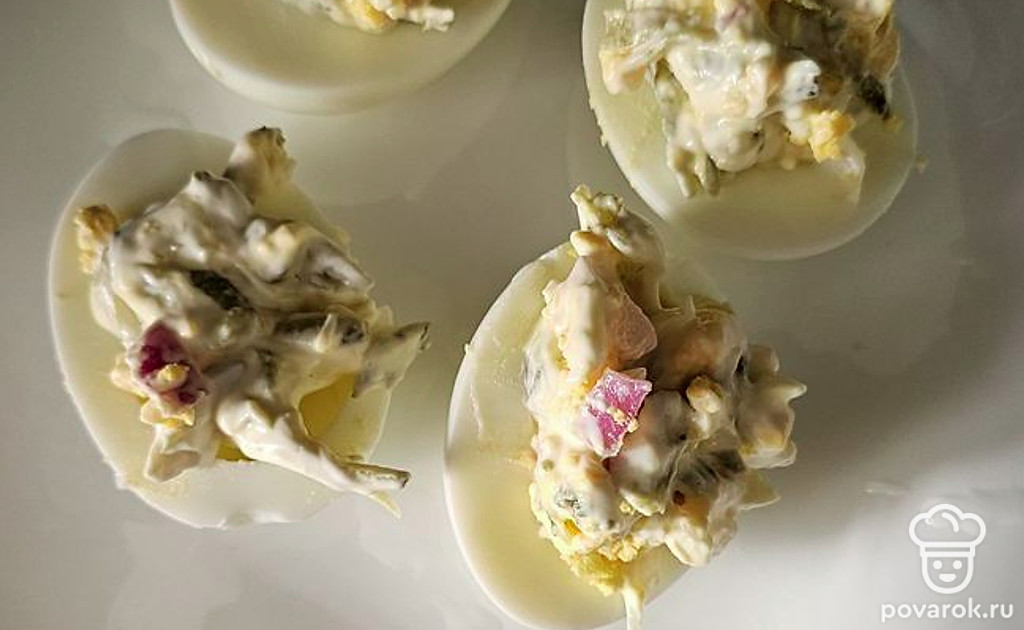 Выложите начинку в яйца.