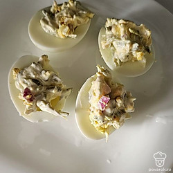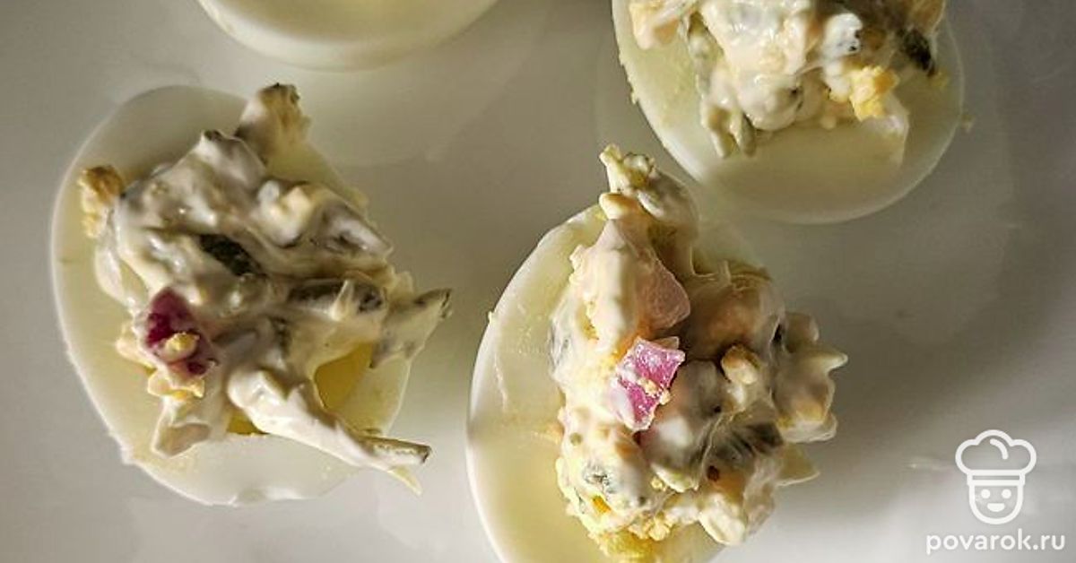 Фаршированные яйца с соленым огурцом