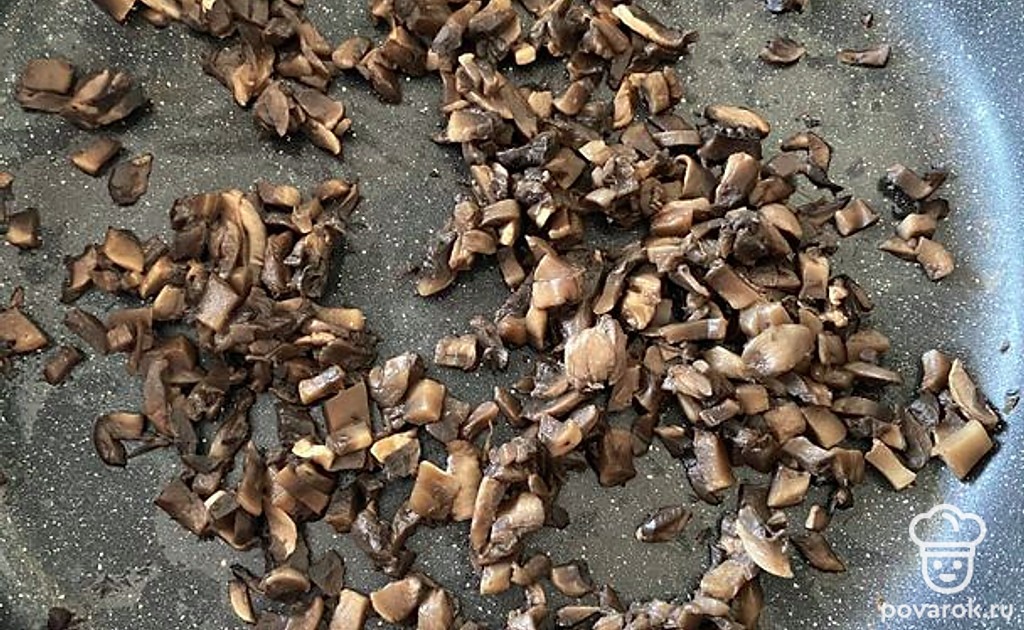 Шампиньоны очистить и пожарить на сухой антипригарной сковородке.