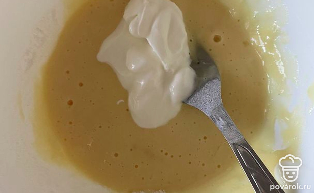 Яйцо взбить и добавить рисовую муку, сметану, соль.