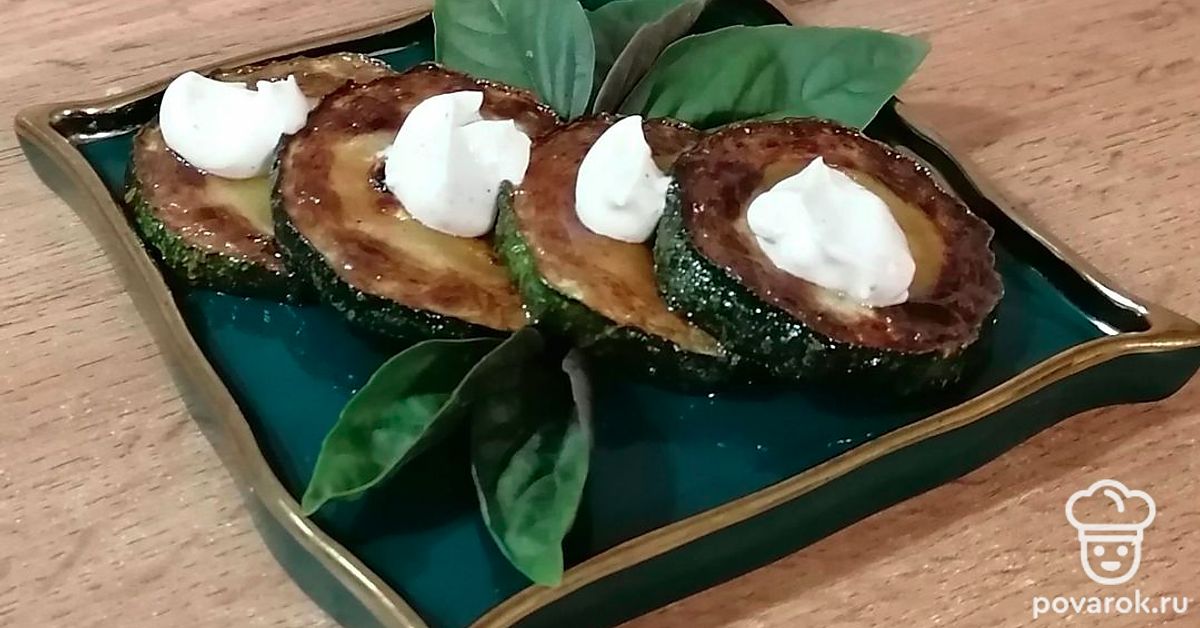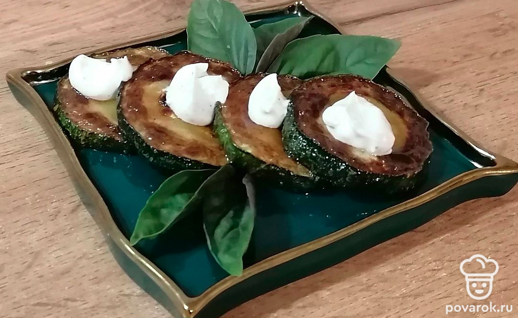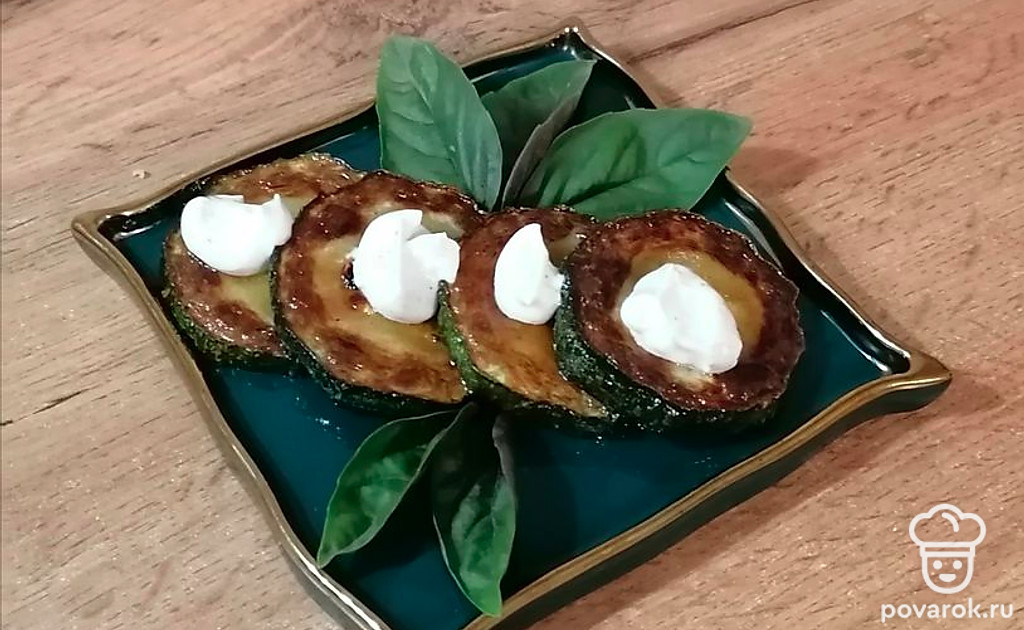 На блюдо выложите остывшие кружки цукини, сверху положите сметанный соус. Блюдо готово. Приятного аппетита!