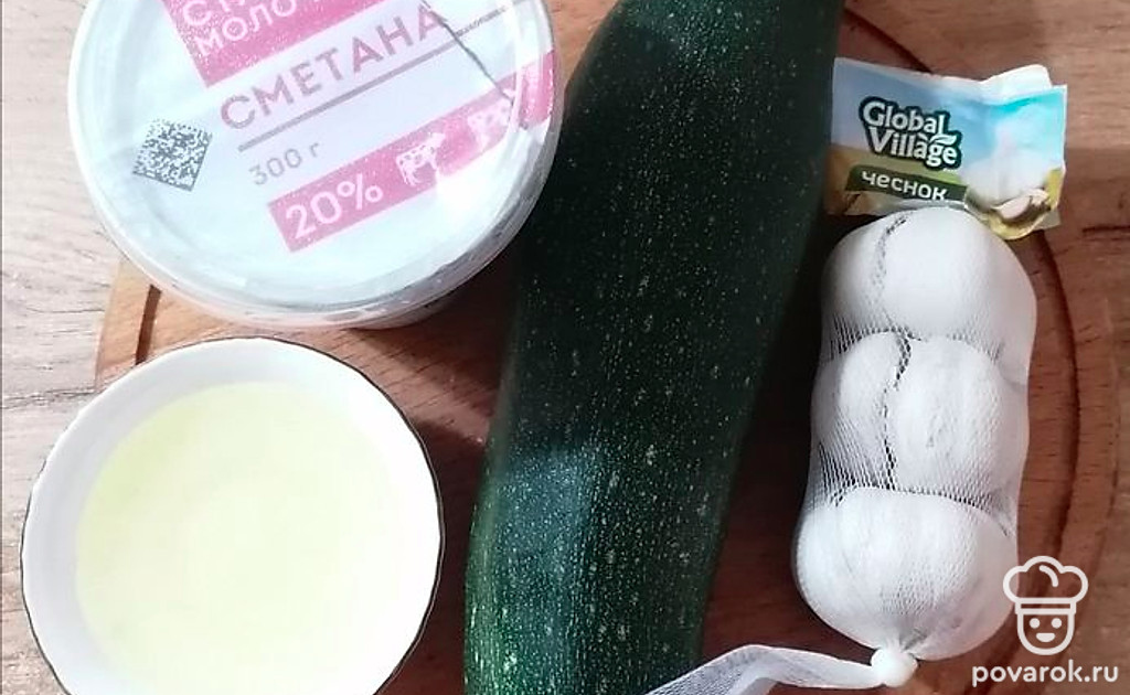 Подготовьте все ингредиенты. Чеснок почистите, цукини помойте.