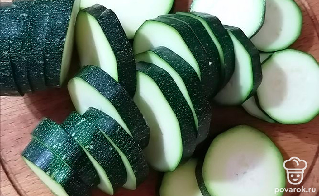 Нарежьте цукини кружочками толщиной 0,5 сантиметров.