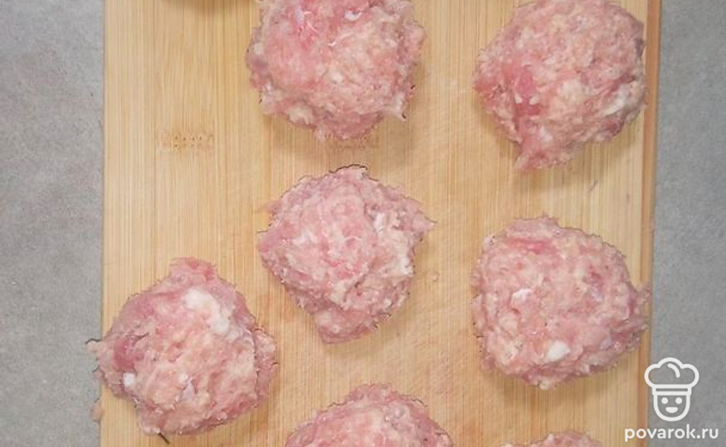 Грудку и лук измельчить в блендере, добавить соль, перец, скатать шарики.