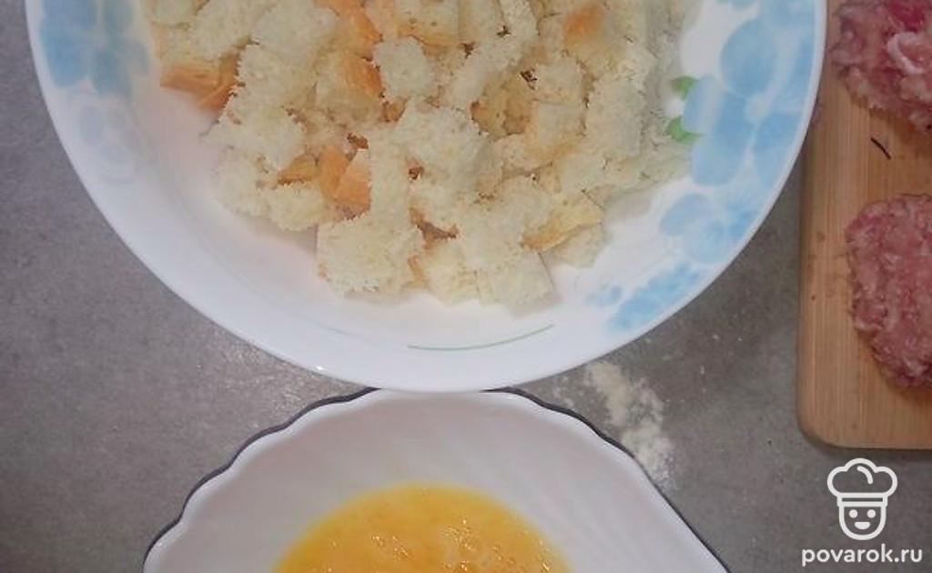 Обмакиваем котлетки сначала в яйцо, потом в хлеб и выкладываем на сковороду. Обжариваем с двух сторон до золотистой корочки.