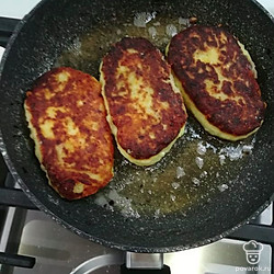 Остудить, почистить, растолочь или перемолоть в блендере картошку. Смешать с яйцами, сыром, мукой и солью.