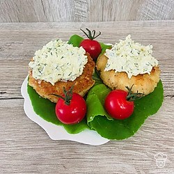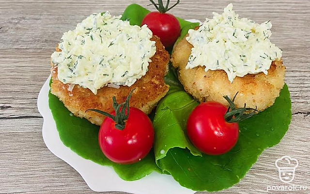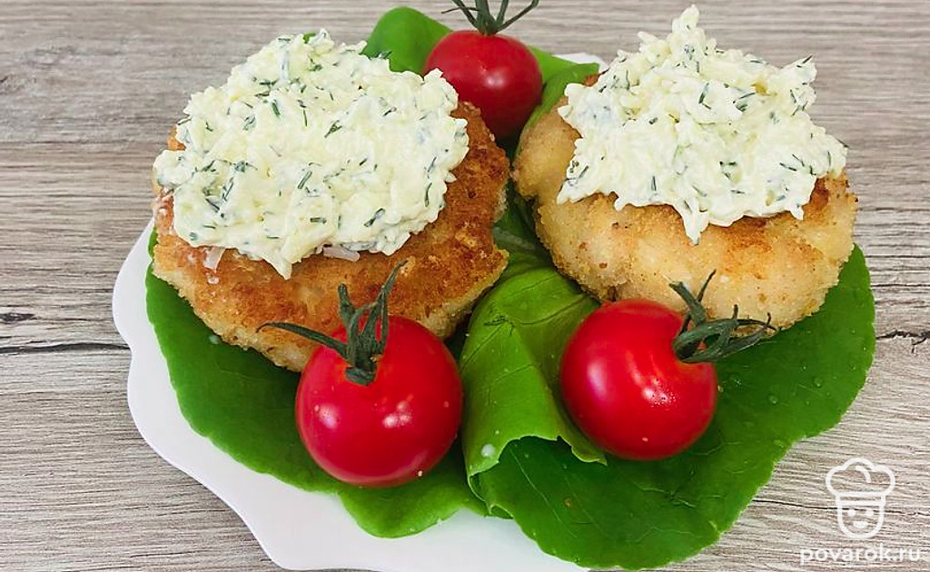 Подавайте котлетки с сырным соусом.