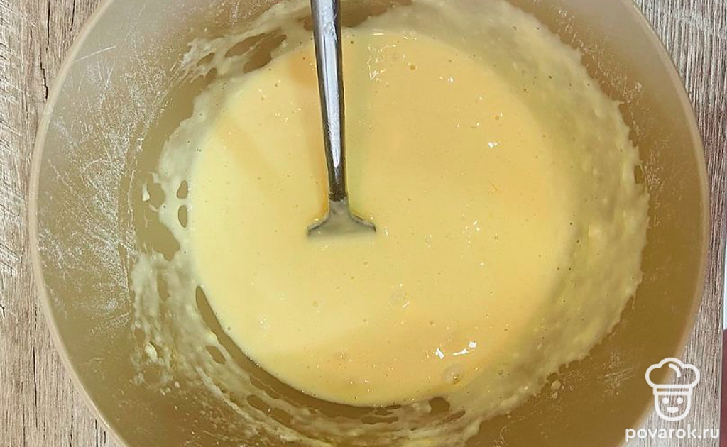 Яйца, муку, соль и майонез в отдельной посуде размешайте до однородного состояния.