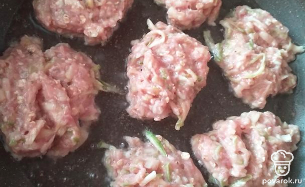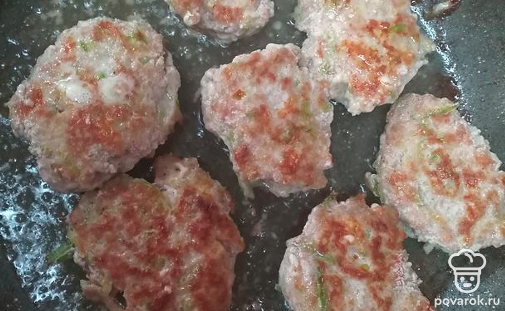 Формируем из фарша биточки и жарим на сковороде с двух сторон до готовности.
