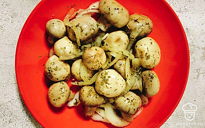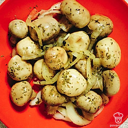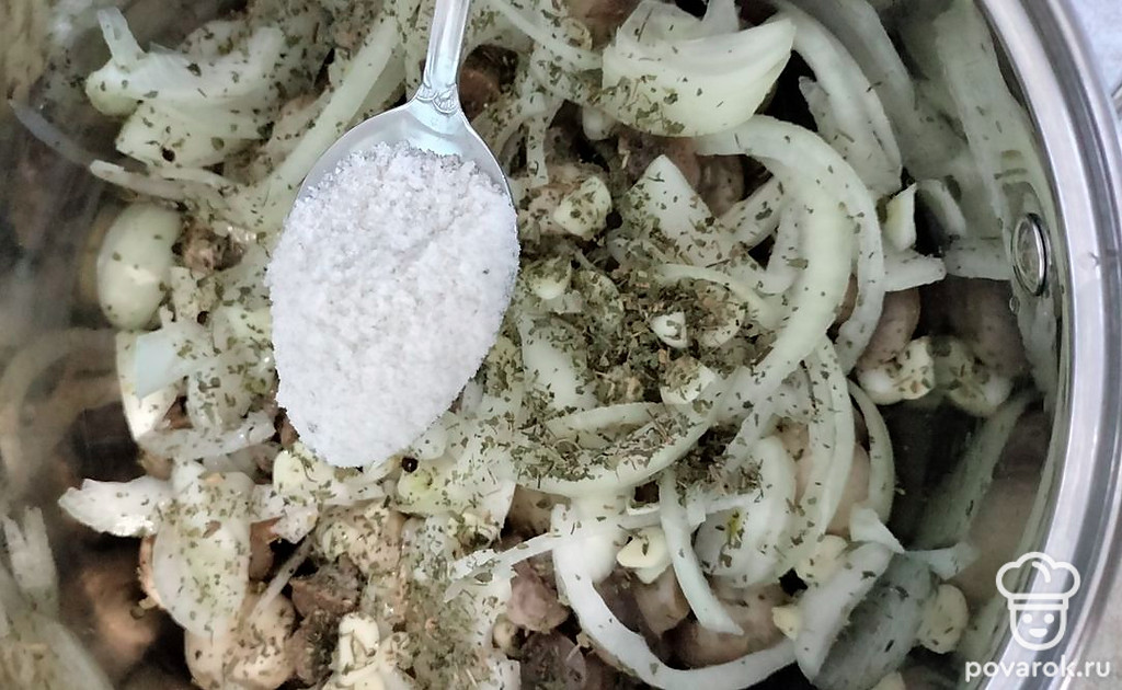 Один из моих любимых рецептов. Лук придает грибам интересный и пикантный вкус.