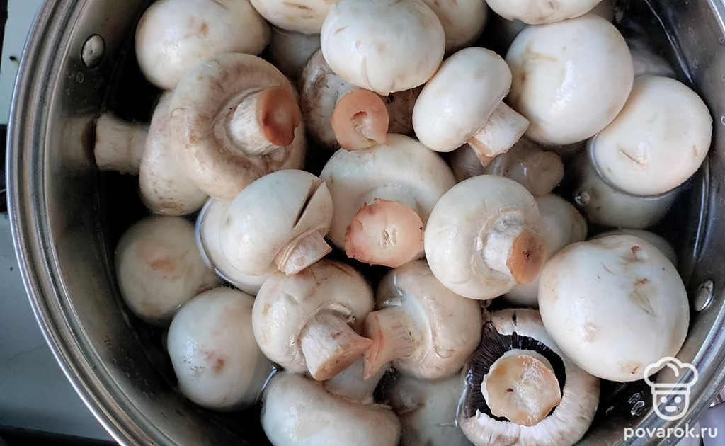 Грибы хорошо помойте. Отварите их в подсоленной воде (7 минут).