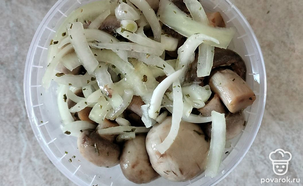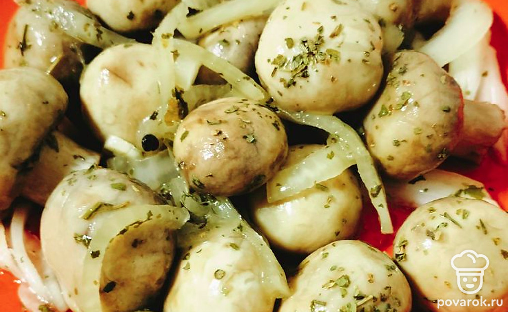 Маринованные шампиньоны с луком готовы. Приятного аппетита.