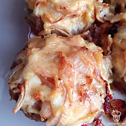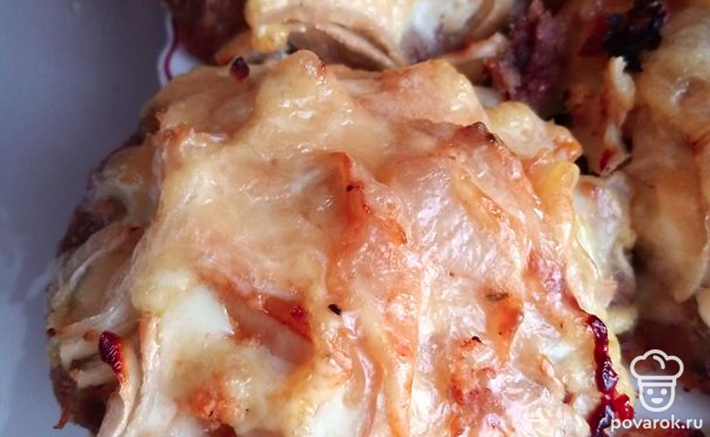 Приготовьте котлеты с начинкой из яиц под сырной шапочкой.