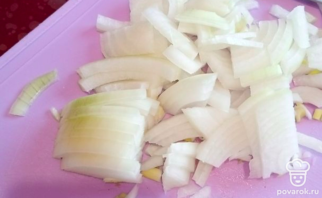 Нарезать мелко репчатый лук. И между делом отварить яйца.
