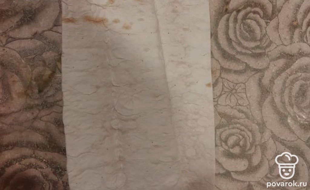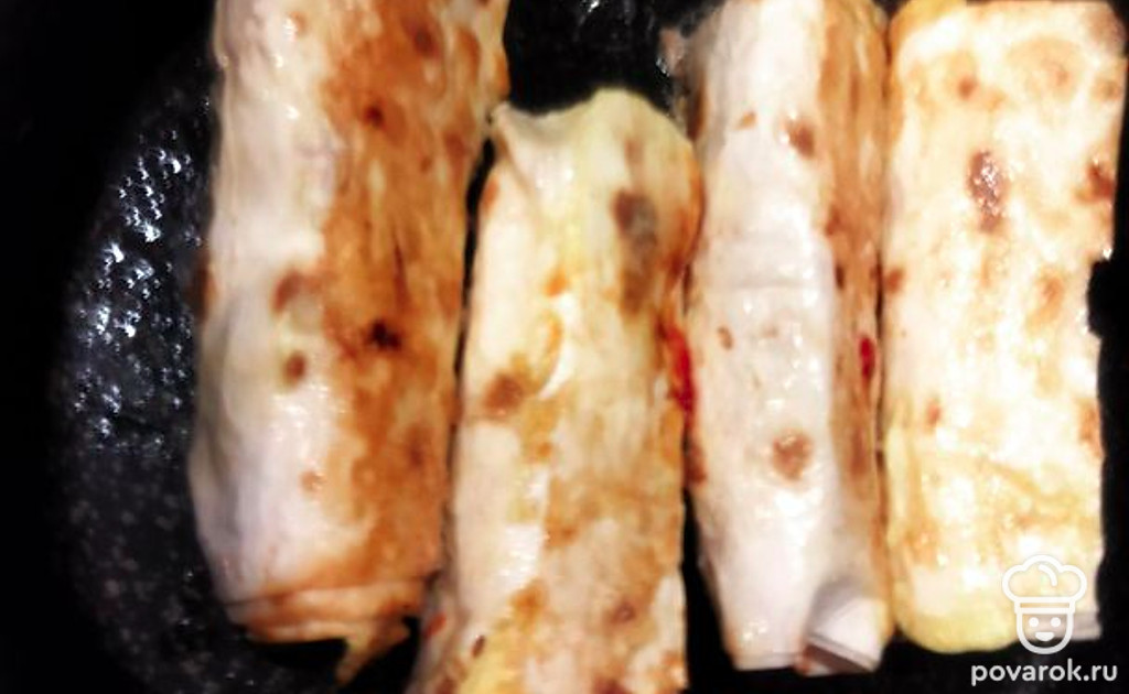 Обжаривайте рулет с лавашем с двух сторон, по 5 минут каждую.