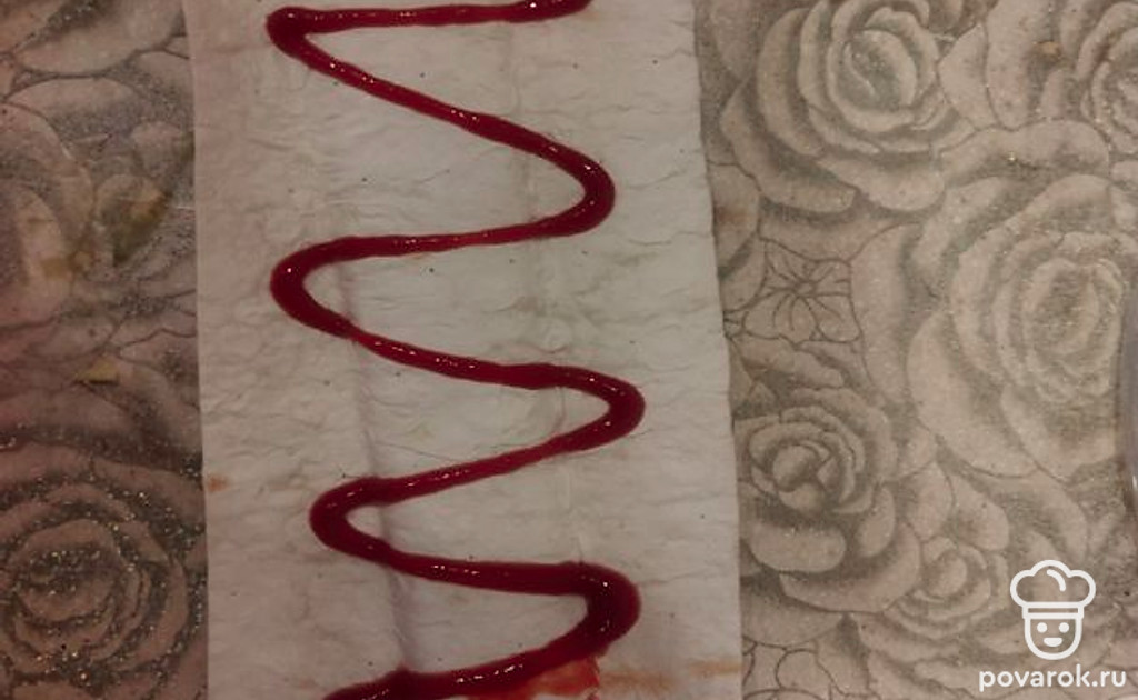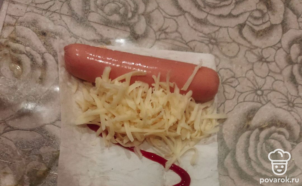 Смажьте лаваш кетчупом и на край положите сосиску.