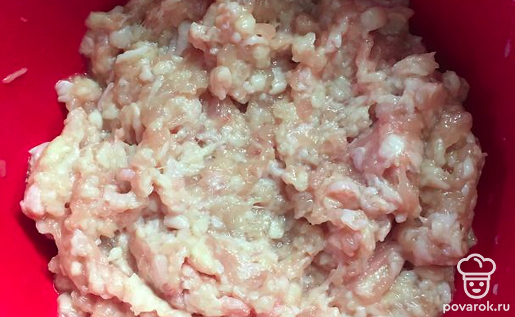 Берём куриный Фарш. Фарш я готовлю всегда заранее и замораживаю. Поэтому в моем случае я его просто достаю из морозилки и заранее размораживаю. Я готовлю фарш из куриного бедра. Куриное бедро не такое сухое как грудка, соответственно котлеты у нас получаются сочные, а не сухие.