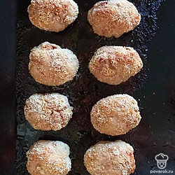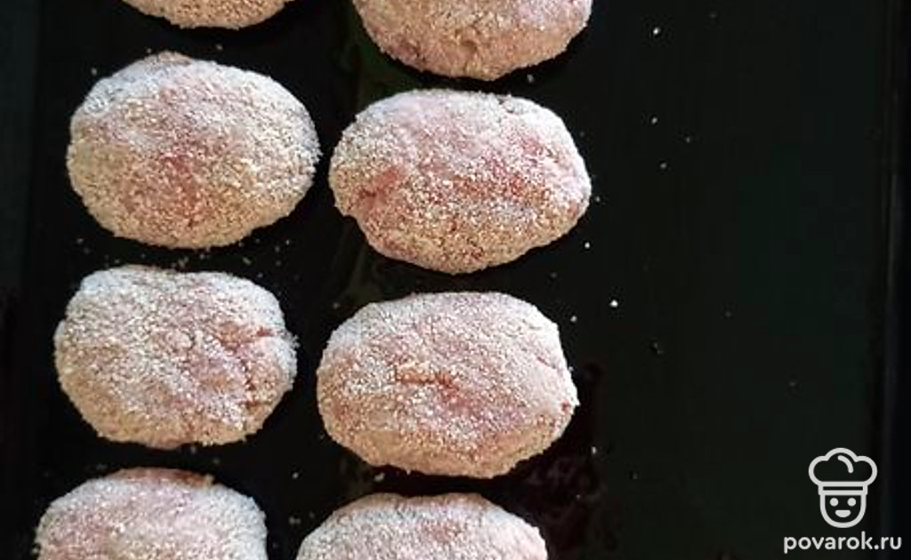 Сформировать котлеты, обвалять в панировке. Смазать противень в растительном масле и выложить на него котлеты.