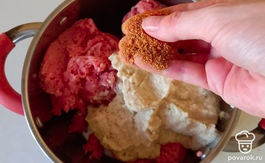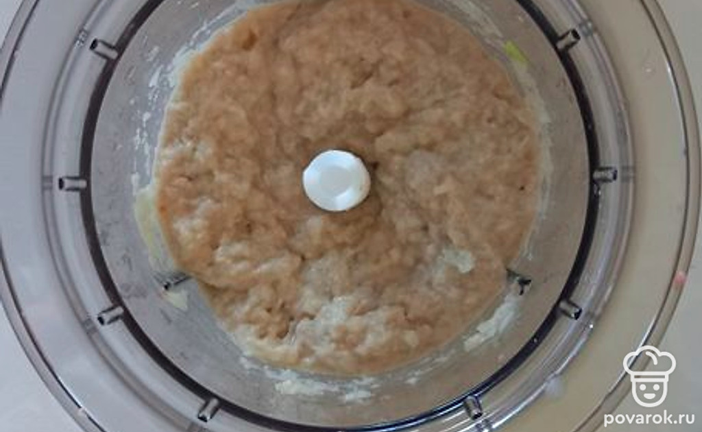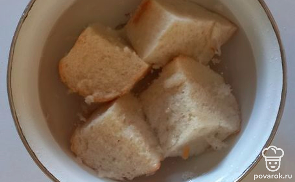 Отжать хлеб и перемолоть вместе с луком в мясорубке.