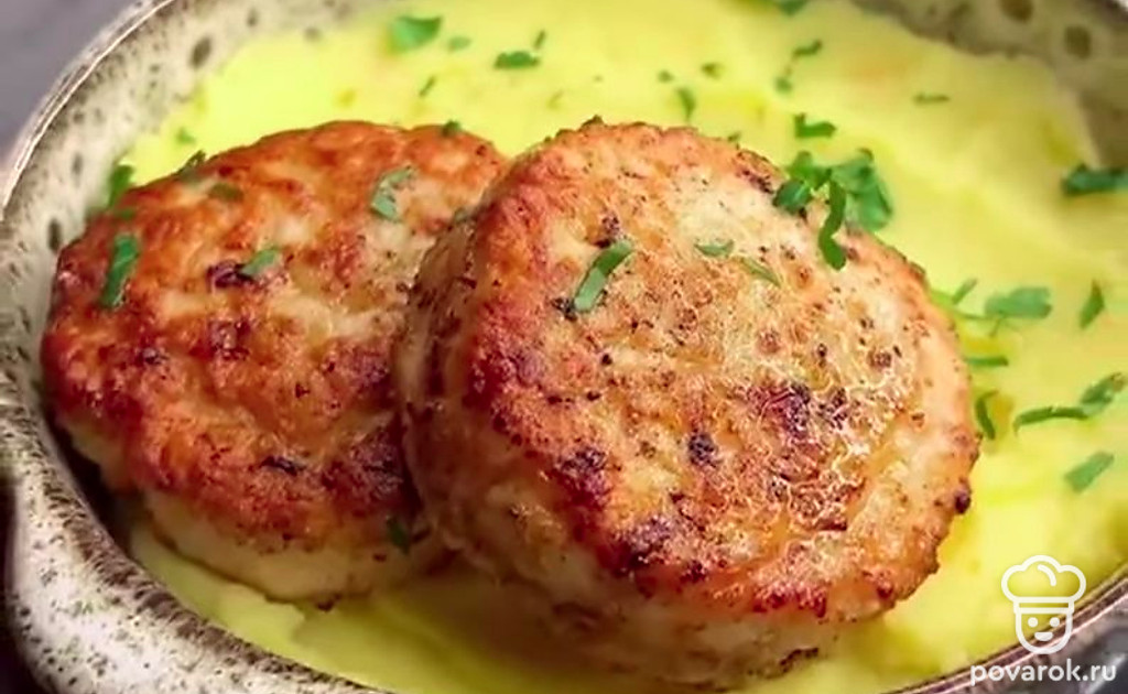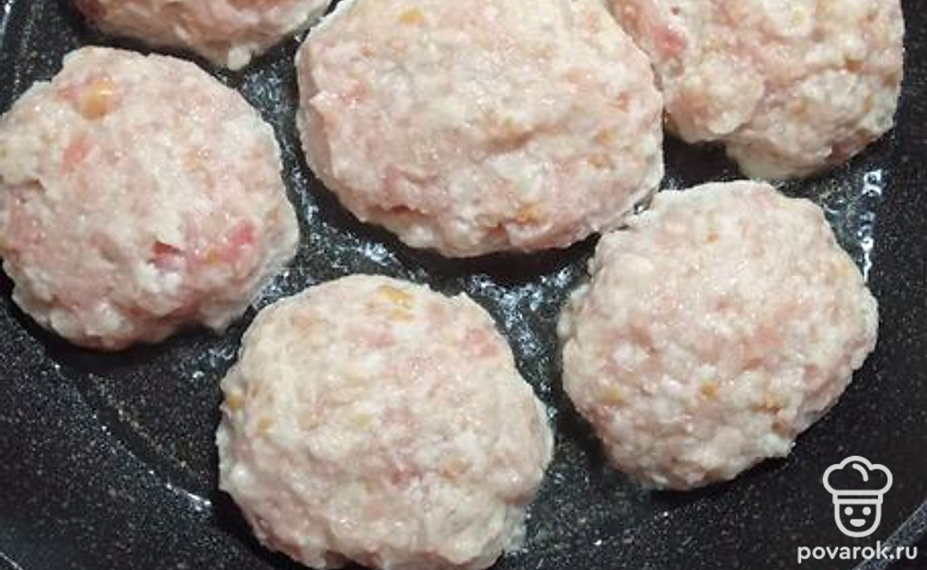 Сформируйте котлетки и положите на раскалённую сковороду. По желанию котлетки можно обвалять в муке.