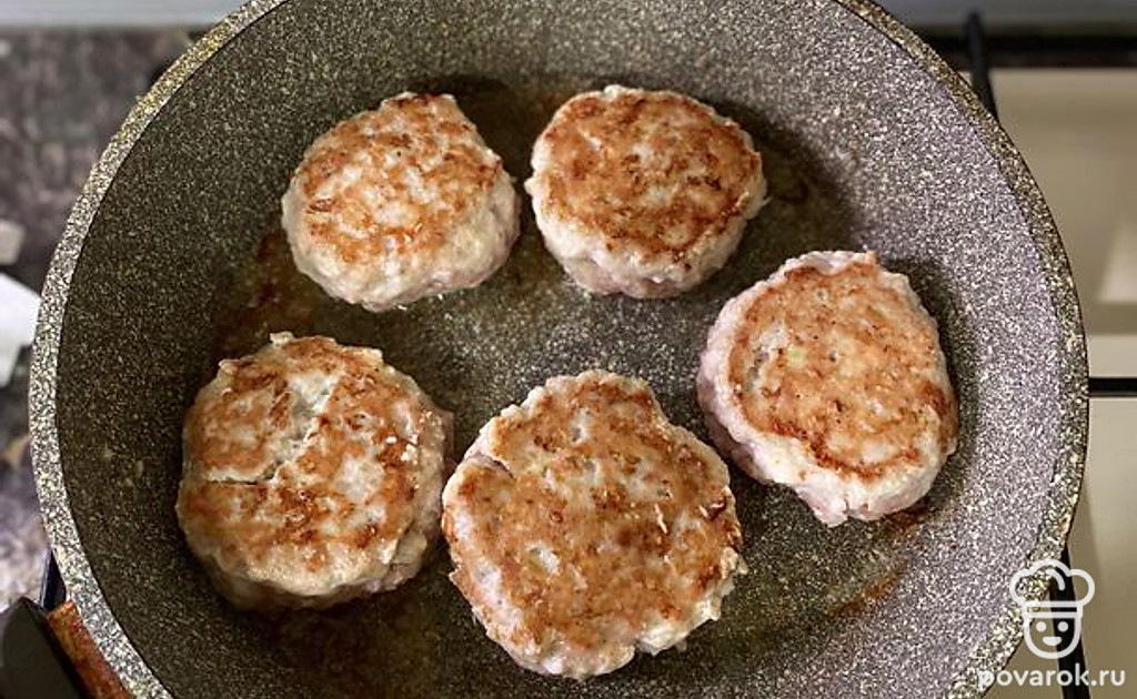 Обжарьте до золотистой корочки. После этого уменьшите огонь, жарьте до готовности.