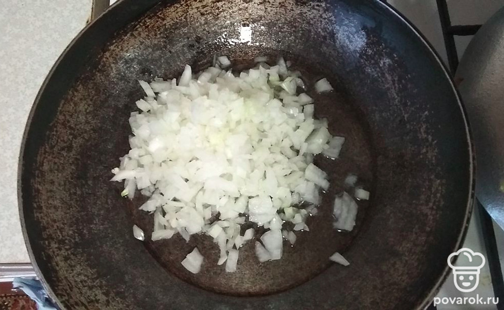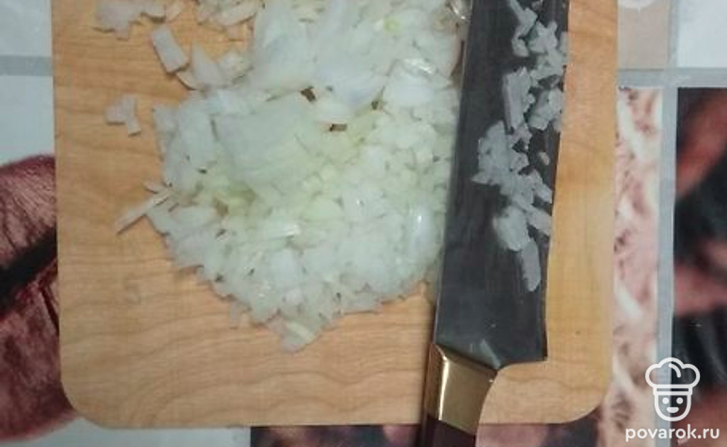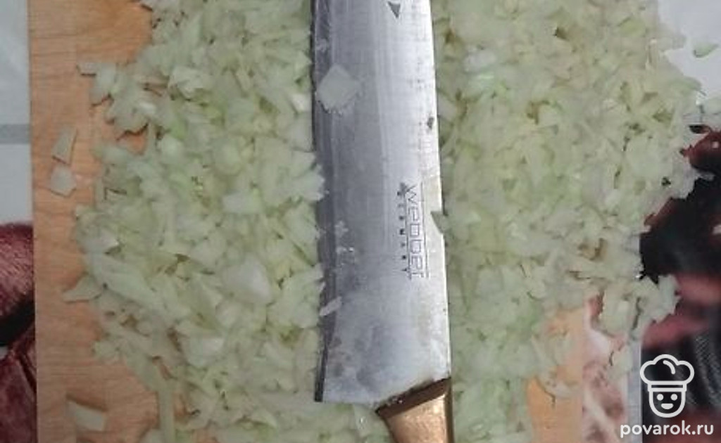 Лук чистим и режем мелким кубиком.