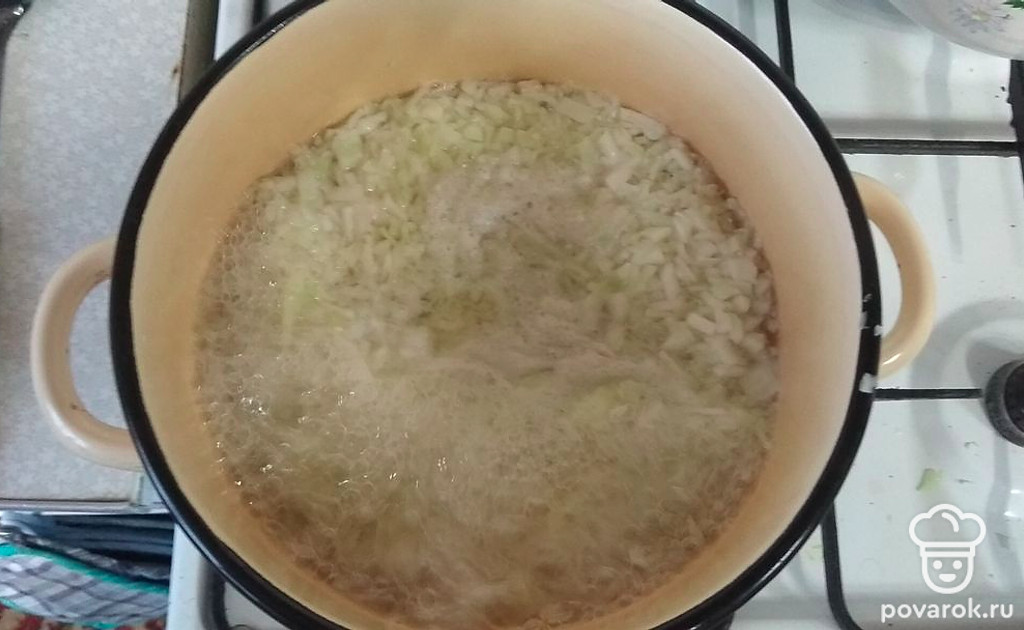В кипящую воду кладем капусту. После закипания варим пять минут.