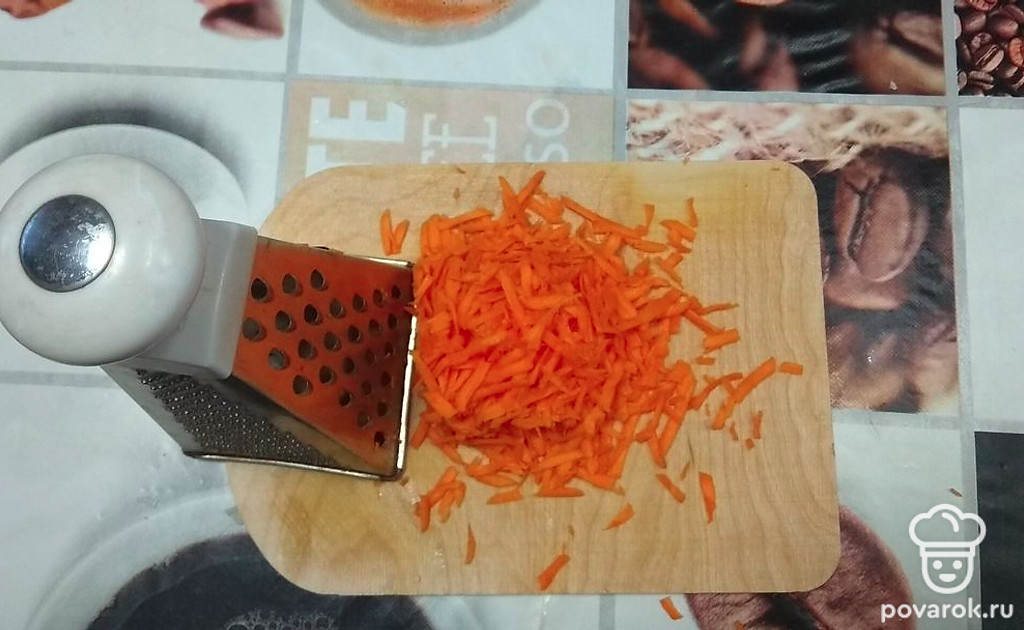 Морковь чистим и трём на тёрке.