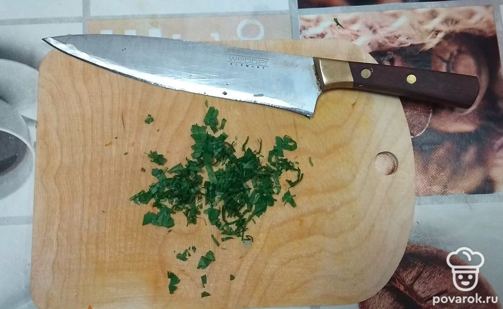 Порубим ножом мелко-мелко.