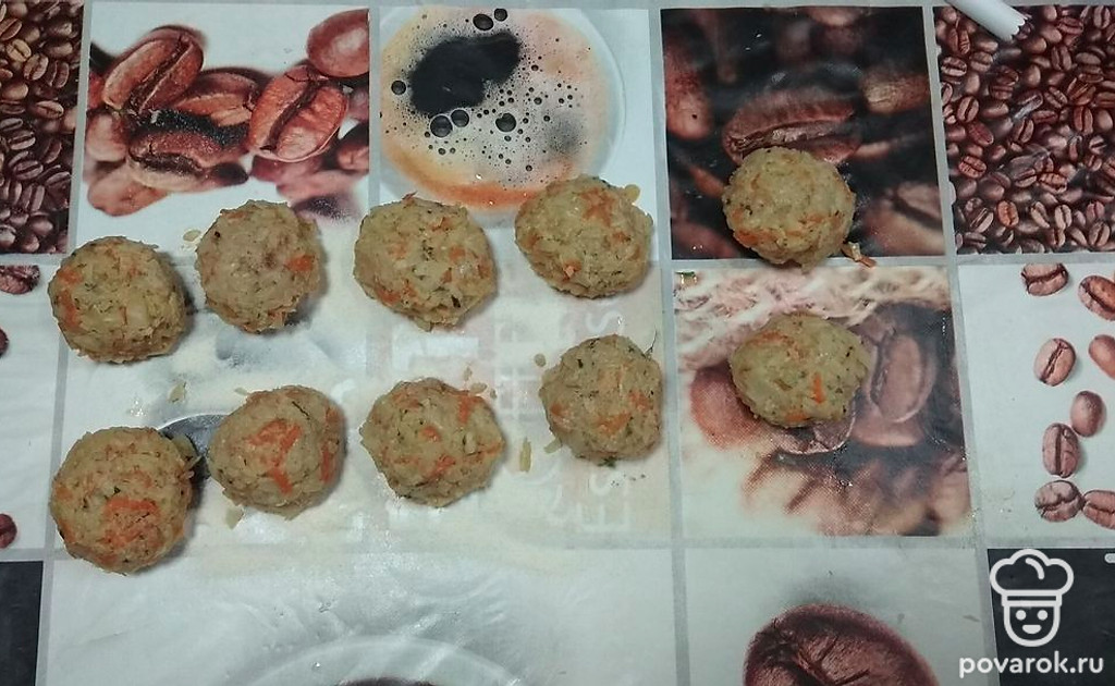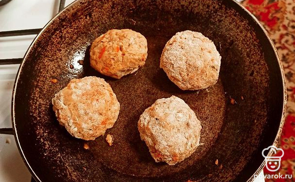 Смоченными руками формируем небольшие котлетки, прижимаем плотно руками, чтобы при жарке они не разваливались.