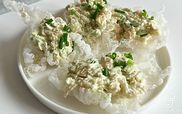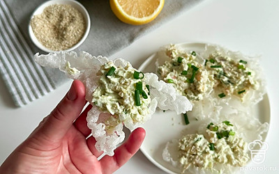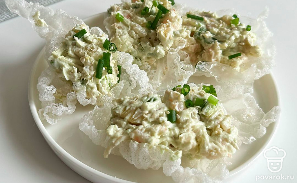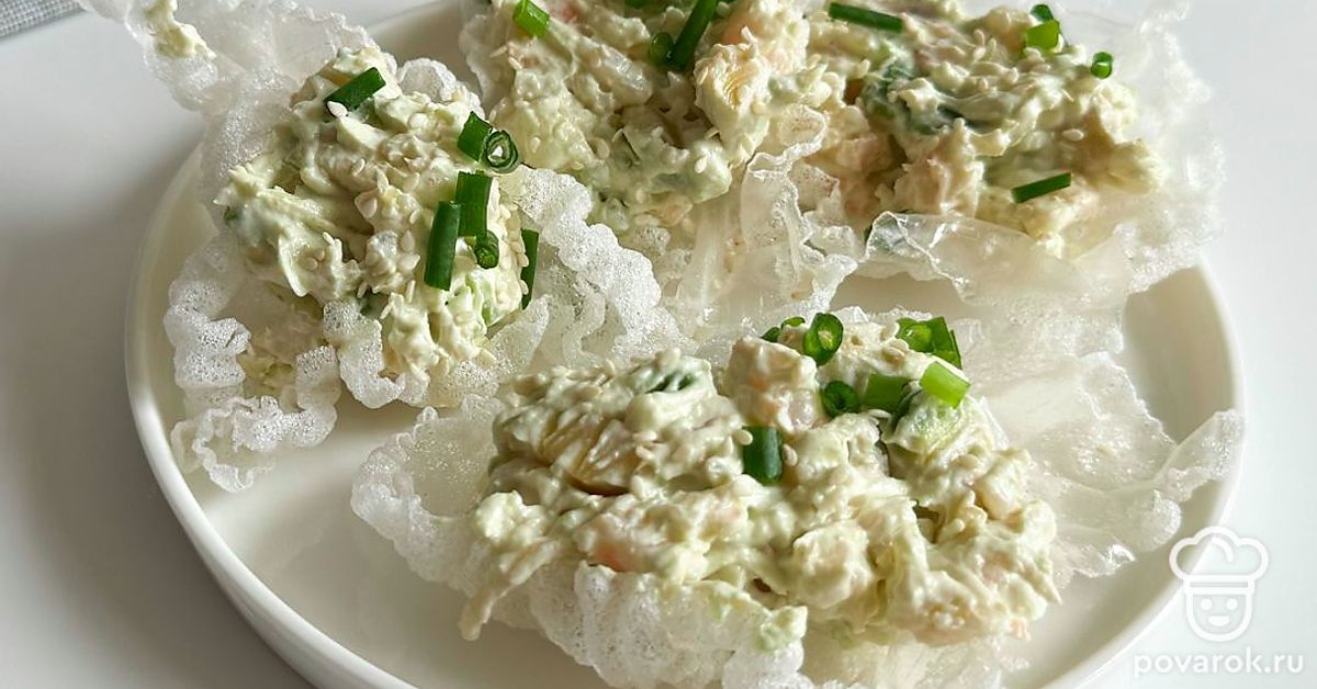 Хрустящие чипсы, которые можно моментально приготовить из рисовой бумаги. Отлично сочетаются с начинкой из креветок и авокадо.
