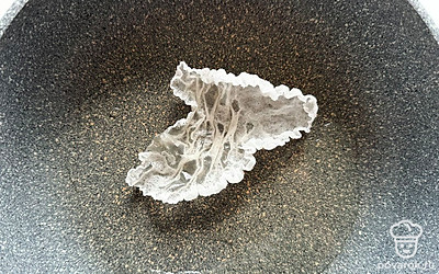 Важно, чтобы сковорода с достаточным количеством масла была хорошо прогрета, тогда в течение нескольких секунд бумага превратится в чашечки.