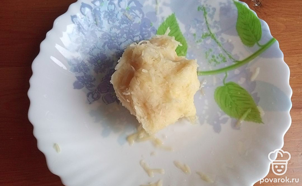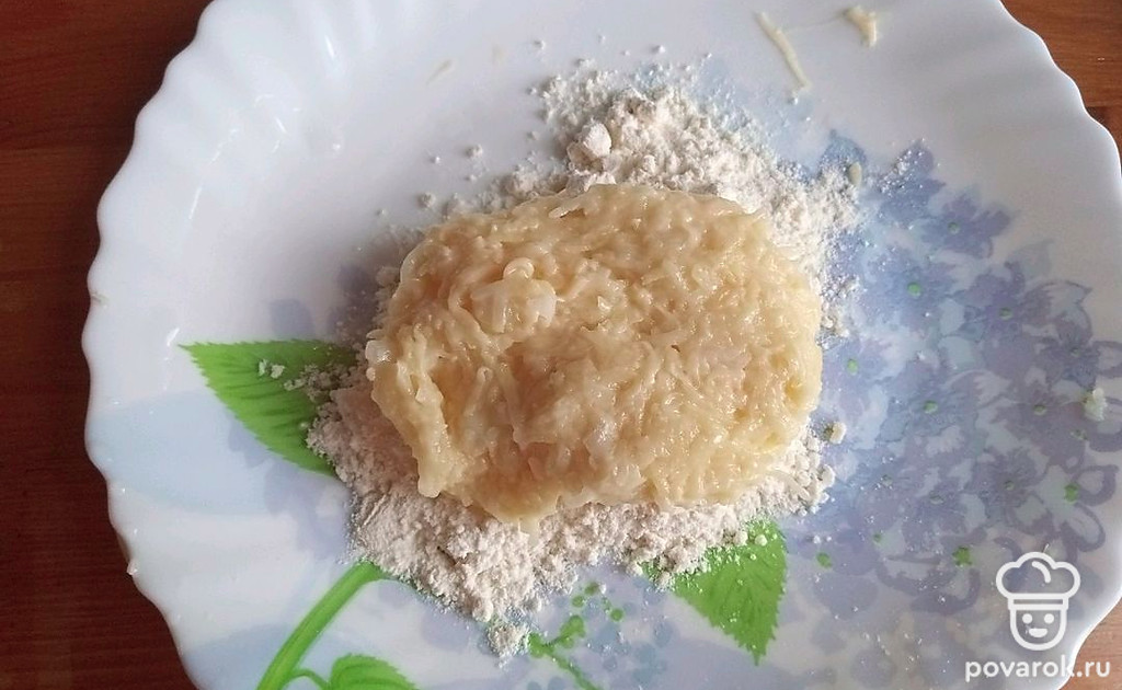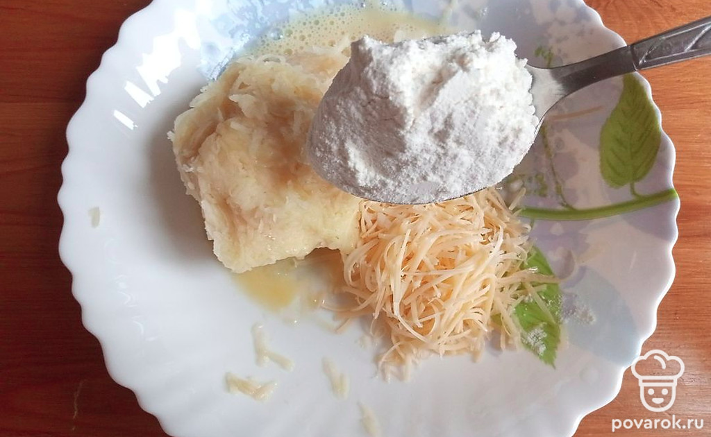 Соединить сыр, картофель, яйцо и добавить муку. Хорошо все перемешать.