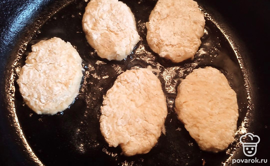 Сформировать котлеты и обвалять в муке с двух сторон.