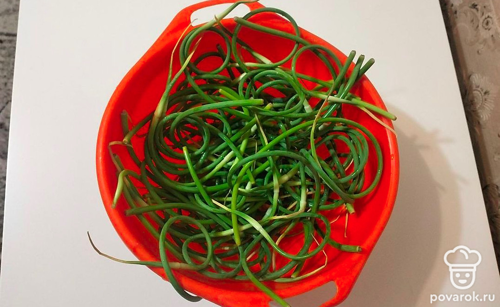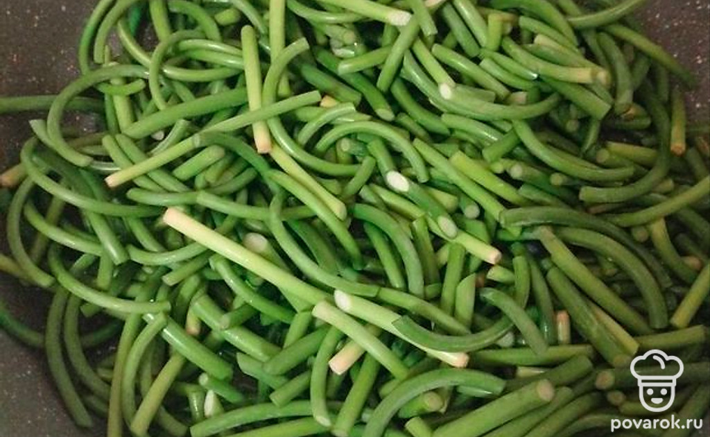 В сковороде разогрейте оливковое масло на среднем огне. Помешивая, обжаривайте стрелки 5–7 минут, пока они не станут мягкими и слегка золотистыми.