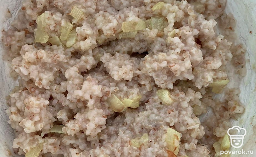 В остывшую кашу добавить лук.