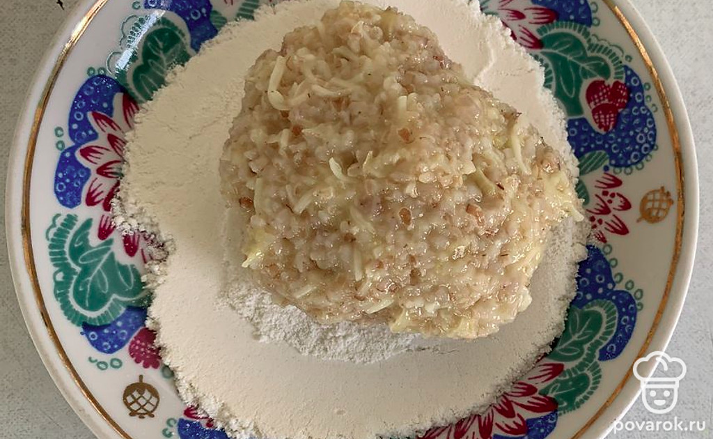 Сформировать биточки и обвалять в муке.