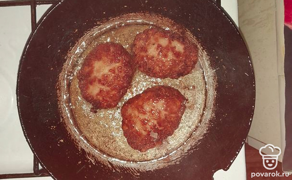 На разогретую сковороду влейте растительное масло, выложите котлеты и жарьте до появления золотистой корочки, 5-7 минут с каждой стороны.
