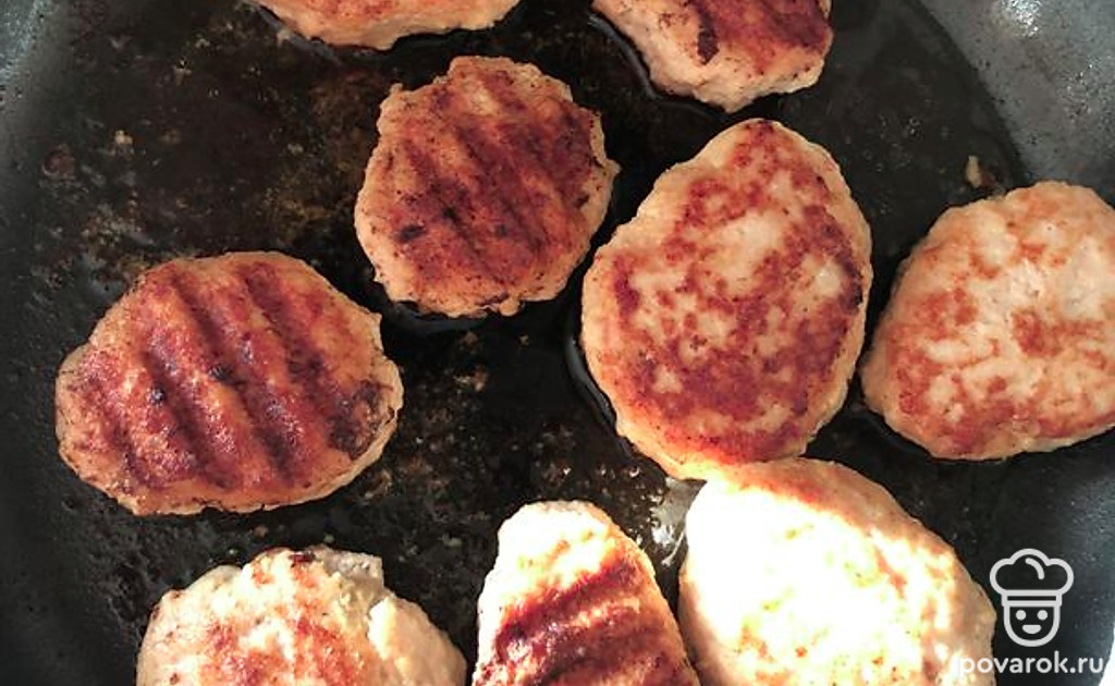 Затем обжариваем котлеты с другой стороны. Я использовала сковороду-гриль.