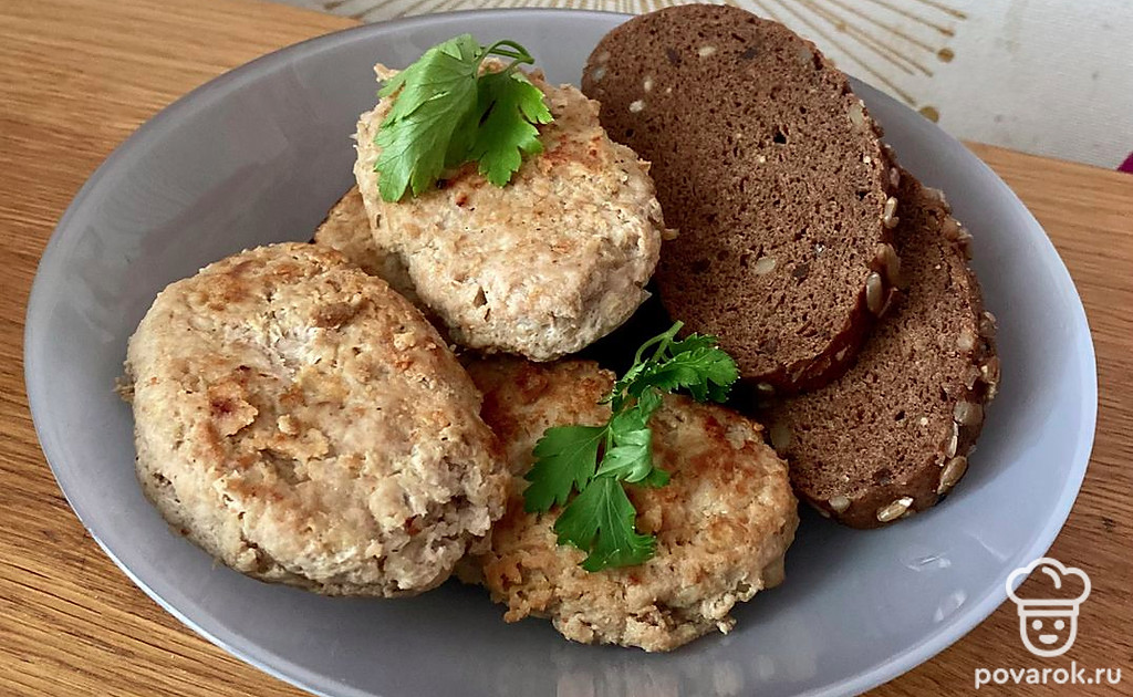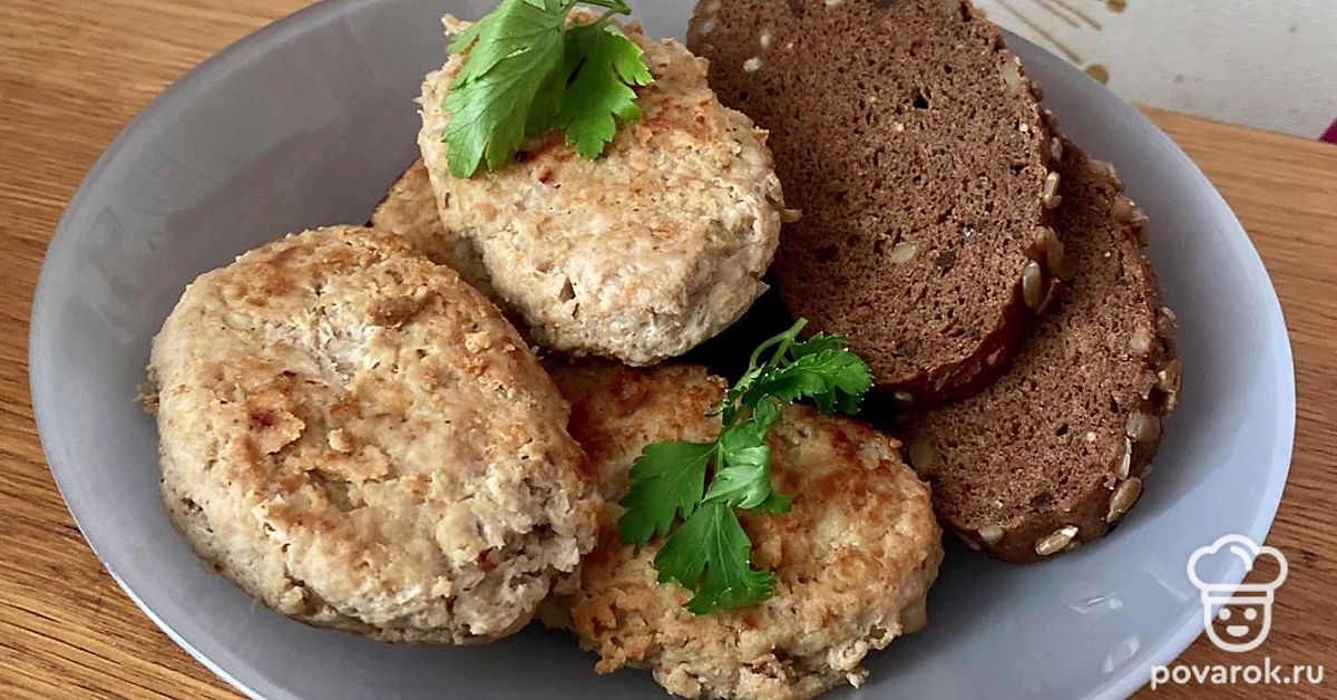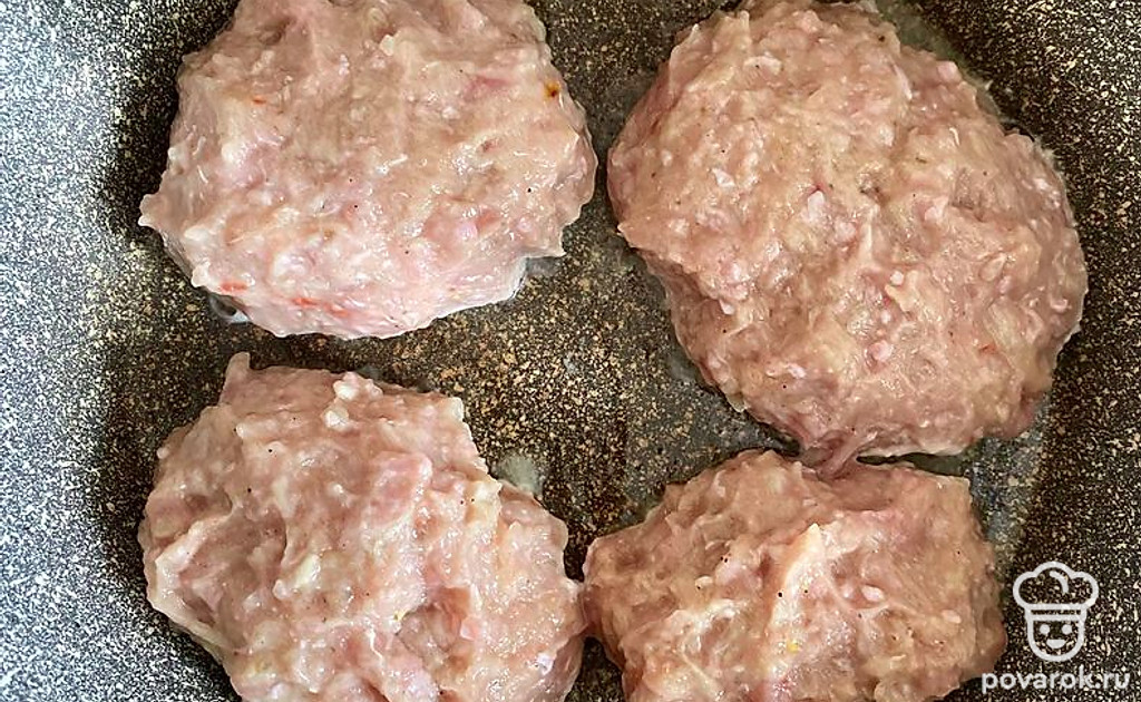 Влажными руками формируем котлетки и выкладываем их на предварительно разогретую и смазанную маслом сковородку. Жарим на медленном огне в течение 25 минут, до образования легкой корочки.