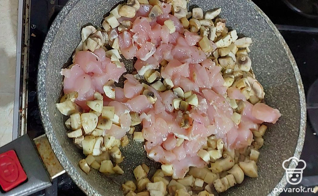 Когда ингредиенты почти приготовятся, посыпьте сыром и доведите до готовности.
