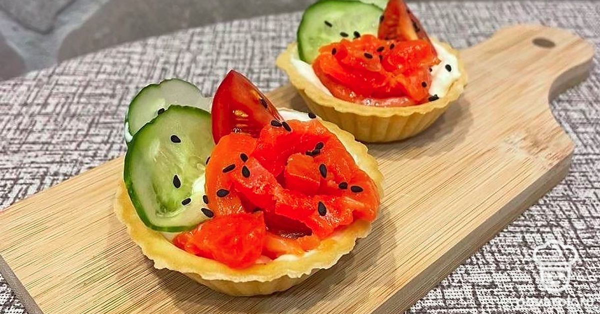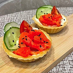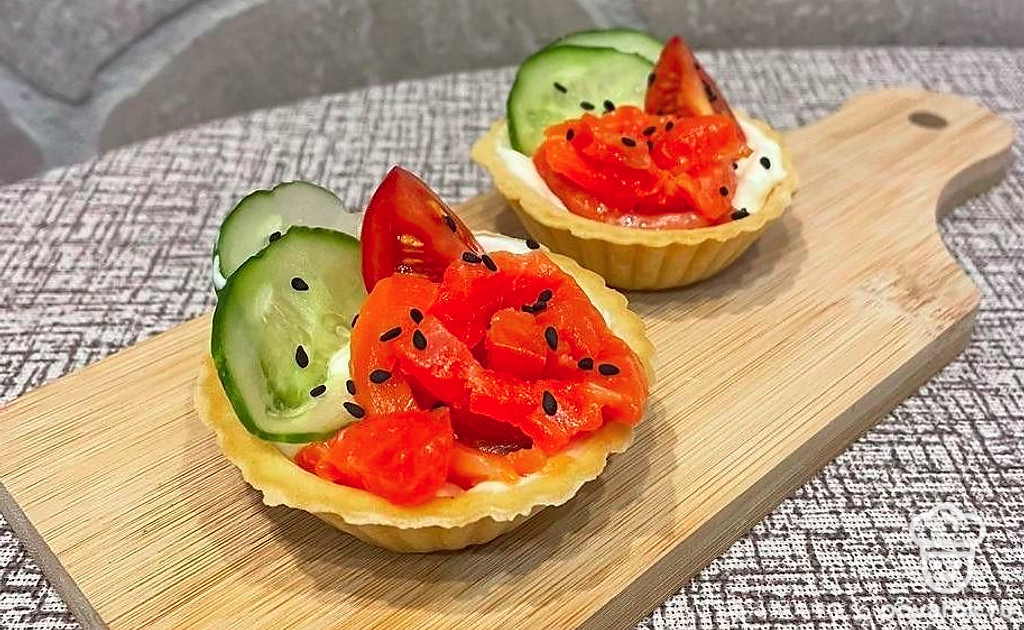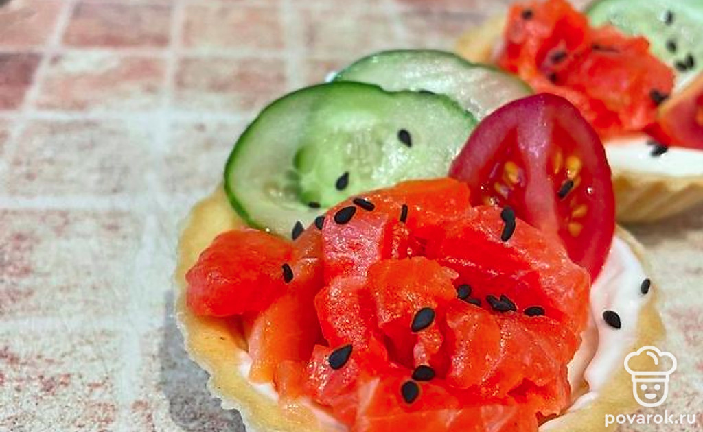 Тарталетки с сыром, форелью и кунжутом