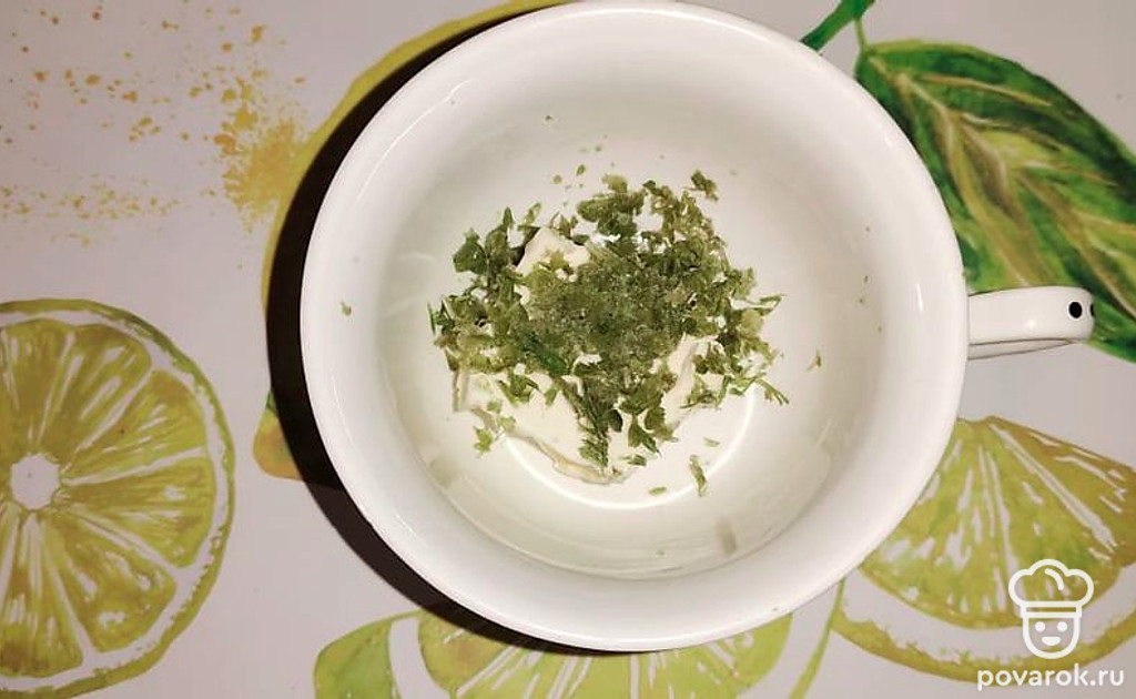 Размягченное сливочное масло смешайте с измельченными чесночными стрелками до однородной массы.