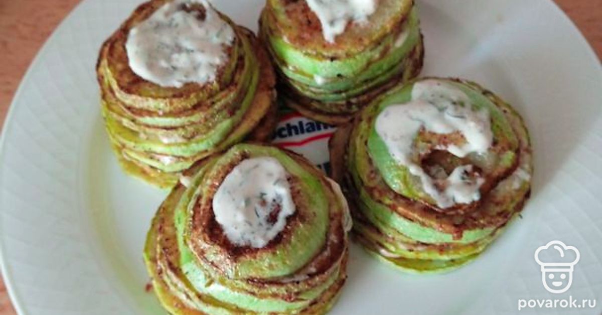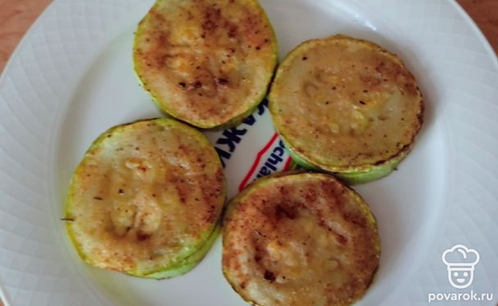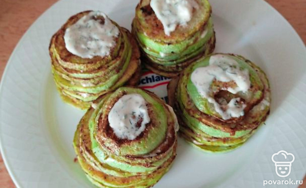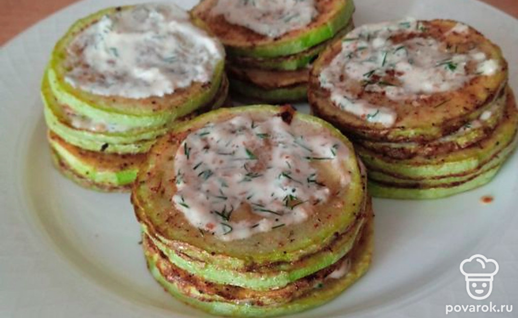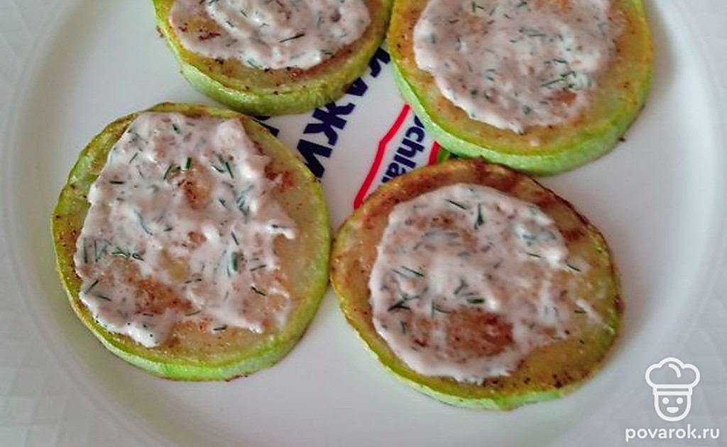 Обсушенные кабачки выложите на тарелку и смажьте соусом.