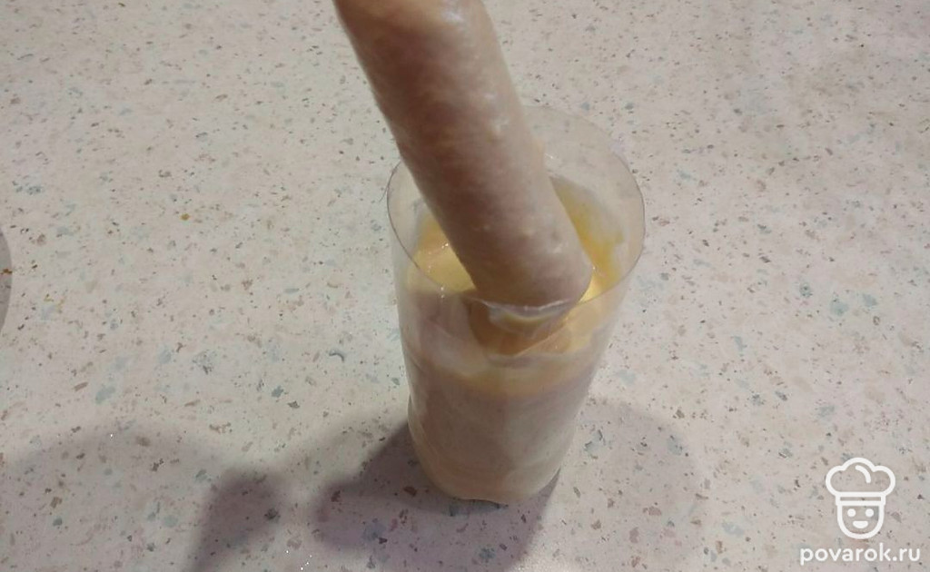 Для удобства перелейте тесто в емкость с высокими стенками.