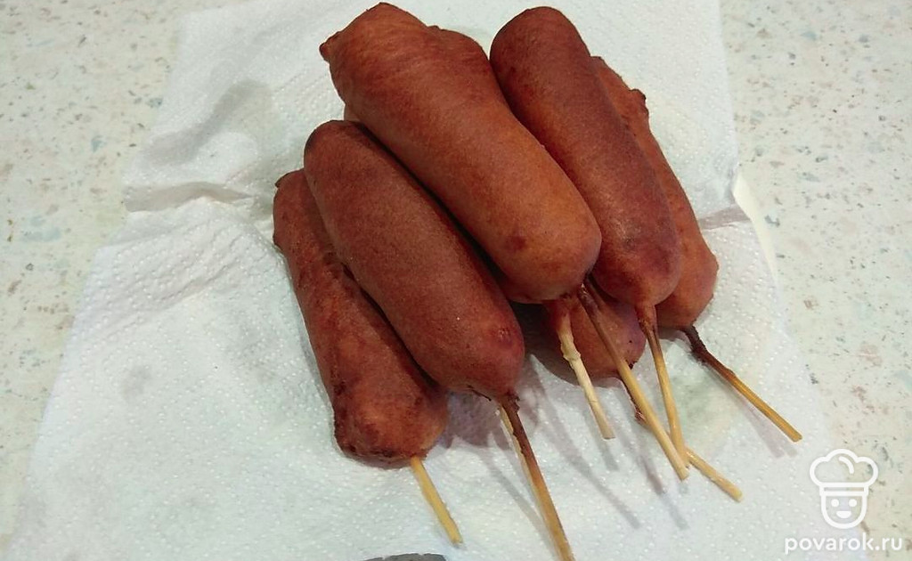 Дайте корн-догам немного просохнуть на бумажном полотенце.