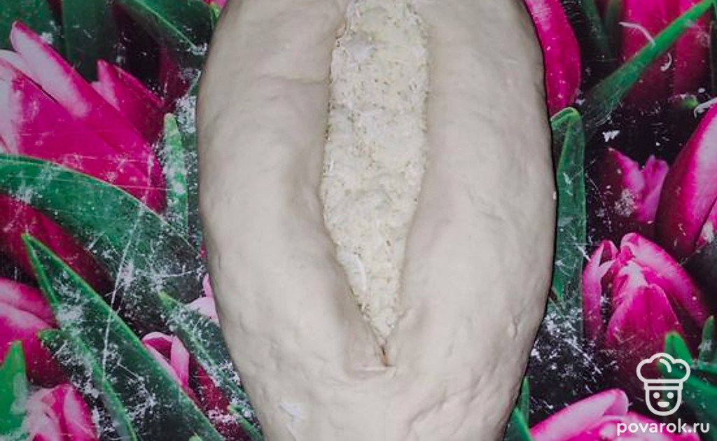 Смажьте сверху яйцом. Выпекайте в духовке при 180 градусах, пока не будет золотистой корочки.