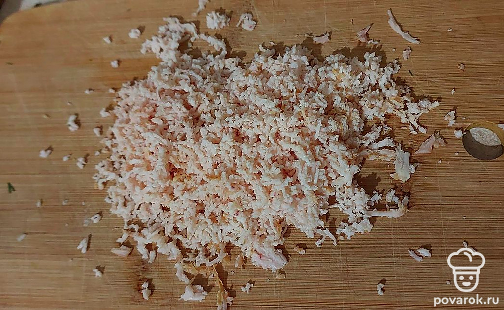 Мелко нарежьте грудку.
